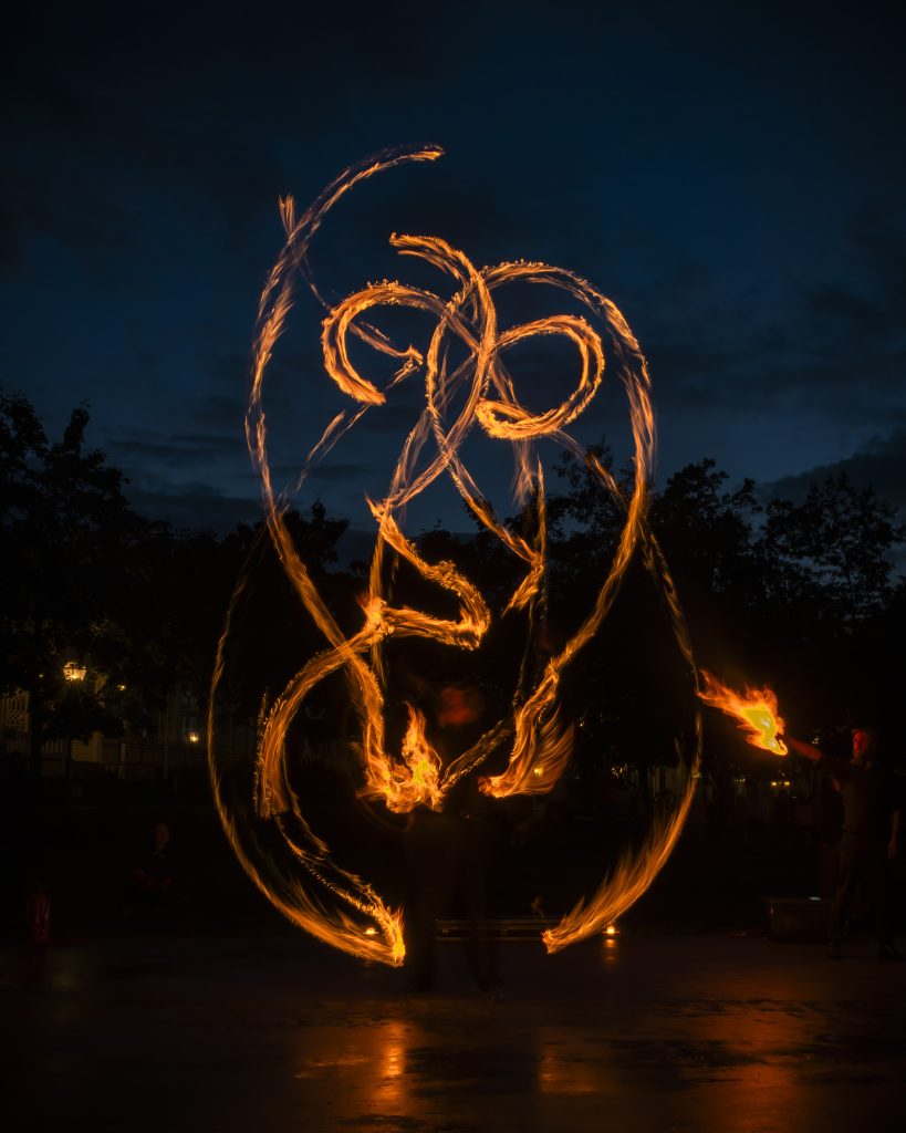 esityksessä nähdään tulitaidetta toteutettuna mm. jongleeraussoihduilla sekä erilaisilla