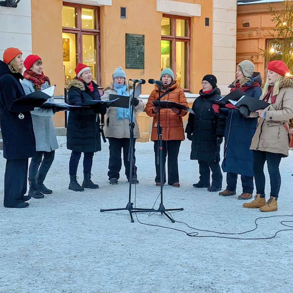 Turun Naislaulajien pienryhmä esittää perinteisiä joululauluja. Turun Naislaulajat löytää